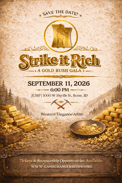 We are looking forward to a beautiful evening with a Gold Rush feel, western elegance, and a whole lot of heart. More than anything, this night is about coming together to support the incredible youth and families served by Game Changers Idaho.